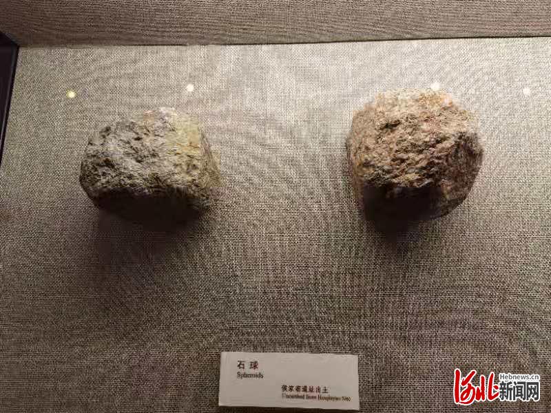 泥河湾博物馆馆长侯文玉介绍,石球为旧石器时代早期的传统工具之一,是侯家窑遗址中最具特色的石器,仅在1976年的发掘中,就发现了1079件,其中最大的重1.5千克,最小的重100克,直径为5—10厘米不等。石球的功能和使用方法,据考古专家推测,这种石器既有敲击(如敲骨吸髓)的功能,又是狩猎的武器,作为飞索石。飞石索的使用方法是:用兽皮或植物纤维将石球包裹起来,用兽皮绳把包裹好的两个石球连的一起,绳长1.3米—1.5米,使用时甩起绳子,把石球抡起来,而后松开绳索,像现代体育项目中的链球一样,利用投掷出去的石球高速旋转时产生的离心力,击中动物的腿部或头部,将其打伤或緾紧,使其失去奔跑能力,然后捕获,或者将动物驱逐到湖边的泥潭里,将其累垮后擒获。抛出的飞索石有效射程可达50米—80米,远者可达100米。