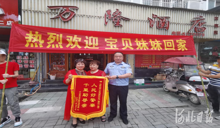 张女士的姐妹向民警鞠躬致谢,并向民警赠送了一面写有“人民好警察,千里助寻亲”的锦旗。通讯员王锋供图