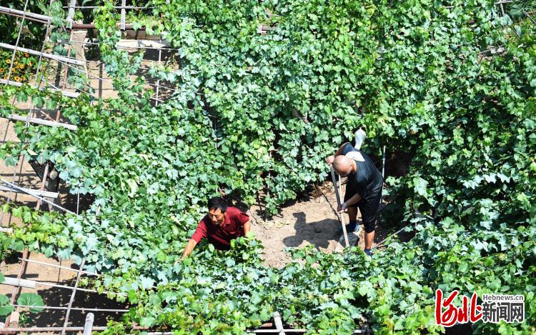 2021年7月25日,河北省张家口市宣化区春光乡观后村村民在管护葡萄。通讯员 陈晓东 摄影报道