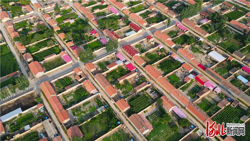 近日,无人机拍摄的河北蔚县西合营镇南大坪村绿意盎然的农家庭院。该村村民在自家庭院种植多种蔬菜、水果,除满足自家食用,还可运到集市上销售,扩宽了致富路。