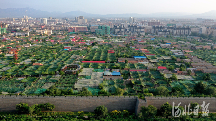 2021年8月18日拍摄位于河北省张家口市宣化区城区内的“宣化城市传统葡萄园”(无人机照片)。