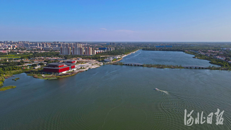 2021年8月27日拍摄的河北省南宫湖及沿岸风光。