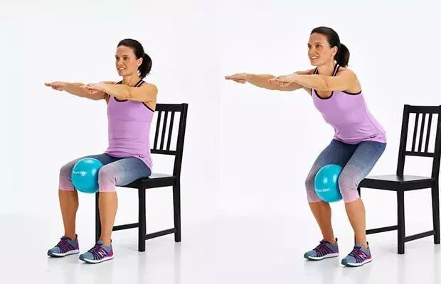 坐在椅子上,双腿夹小塑球