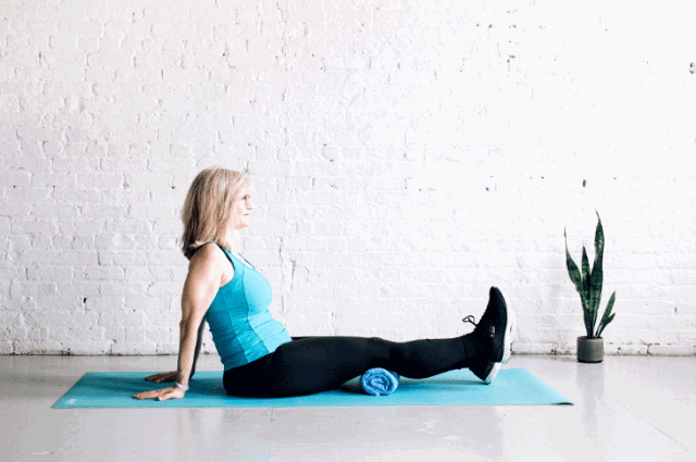 将毛巾卷放在膝盖的下方