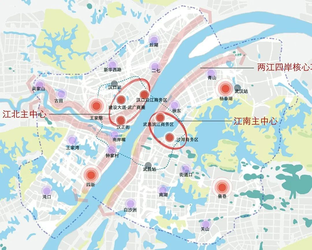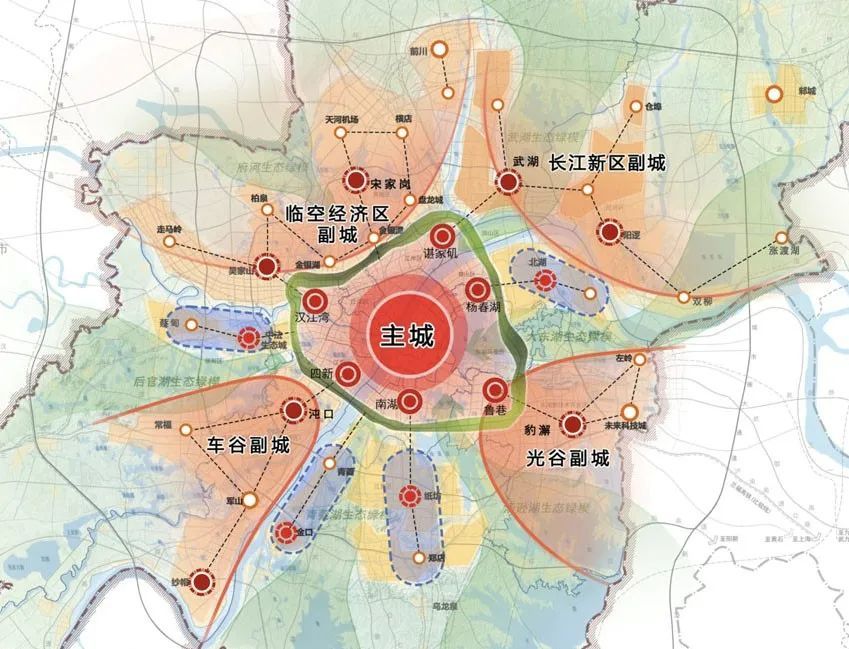以穿城而过的长江为主轴,加强汉口、武昌、汉阳“三镇四城”的多中心差异化发展和一体化融合,按“三镇做优、四城做强”的方向,扩大多中心布局。