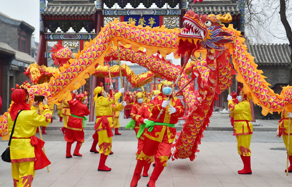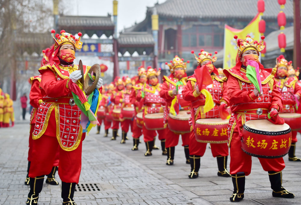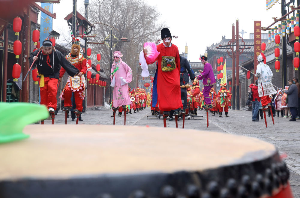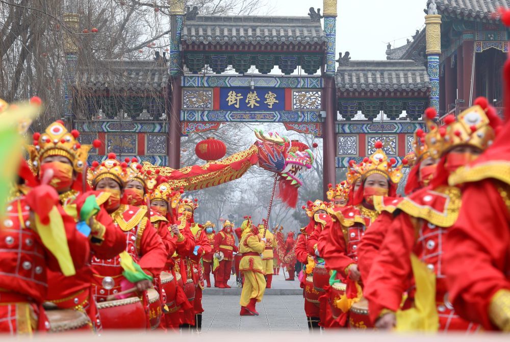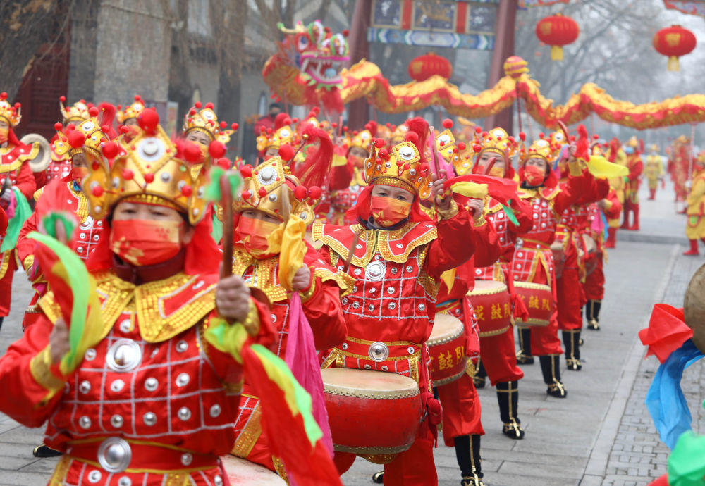 春节临近,河北省石家庄市正定县组织开展多彩非遗迎新春文化演出活动,当地民间艺人带来舞龙、战鼓、跑竹马、踩高跷等非遗表演,喜迎即将到来的虎年春节。