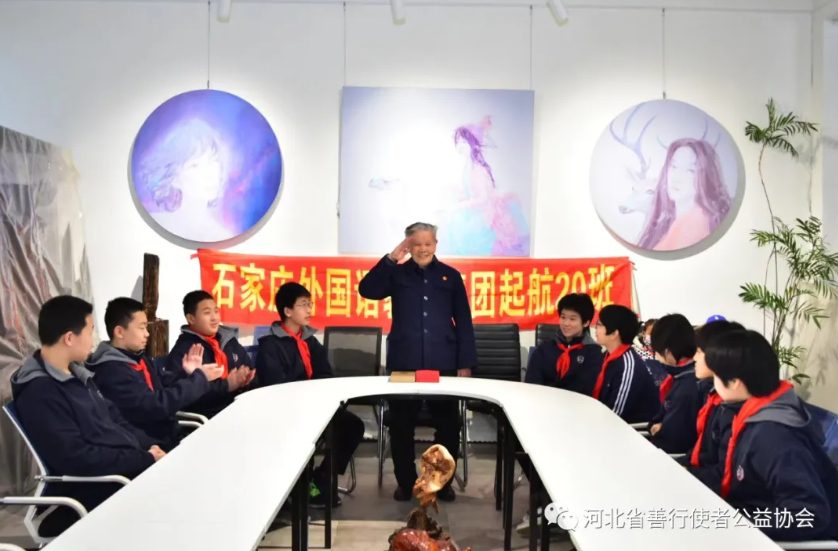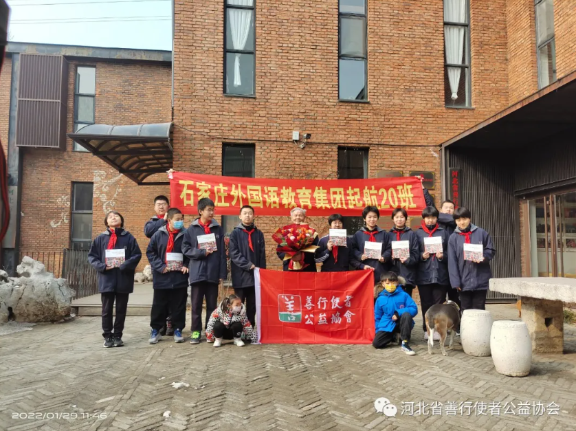 2022年1月29日,石家庄市第43中学8年级学生来到河北省善行使者公益协会慰问抗美援朝老革命李成发先生。