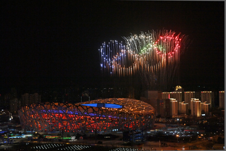 2月4日晚,第二十四届冬季奥林匹克运动会开幕式在北京国家体育场举行。这是焰火表演。新华社记者 李鑫 摄