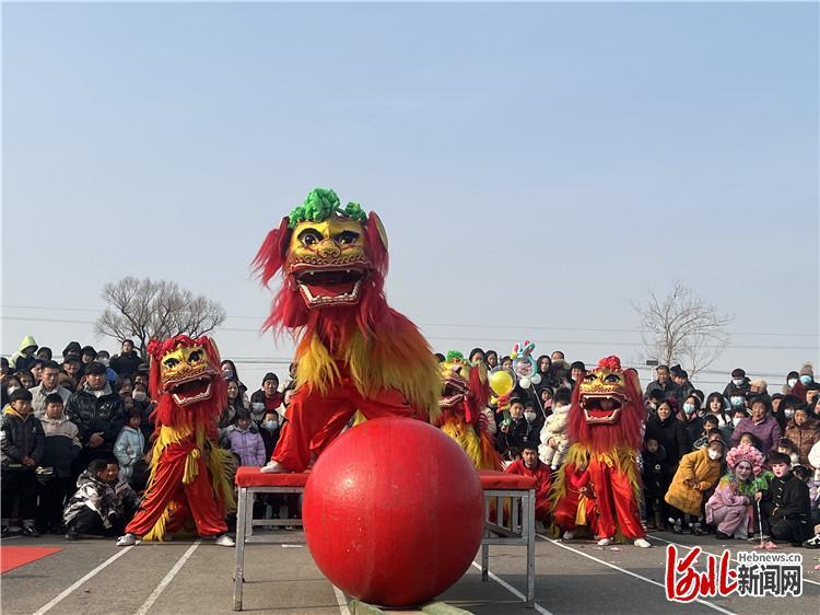 2月15日,沧县刘吉舞狮团的演员正在为群众表演。河北日报记者王雅楠摄