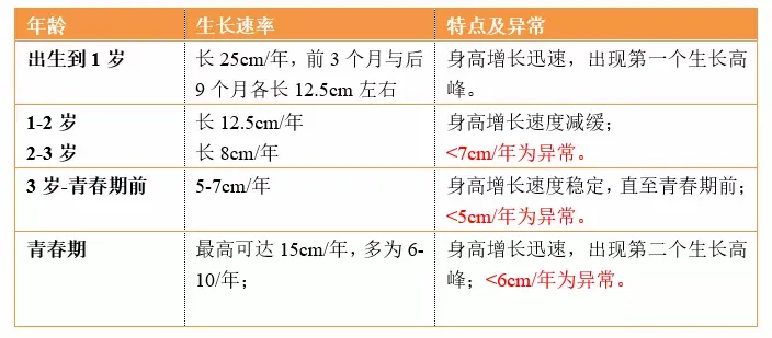 3 岁前身高增长小于 7cm/年,3 岁到青春期小于 5cm/年,青春期身高增长小于 6cm/年,就有可能是发育异常,一旦发现,就要及时就医。