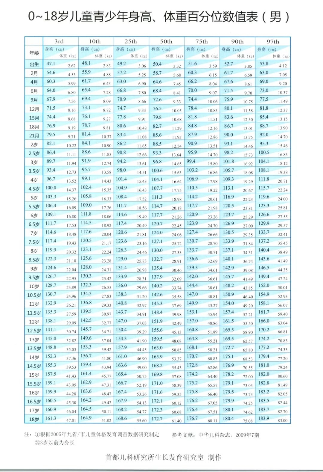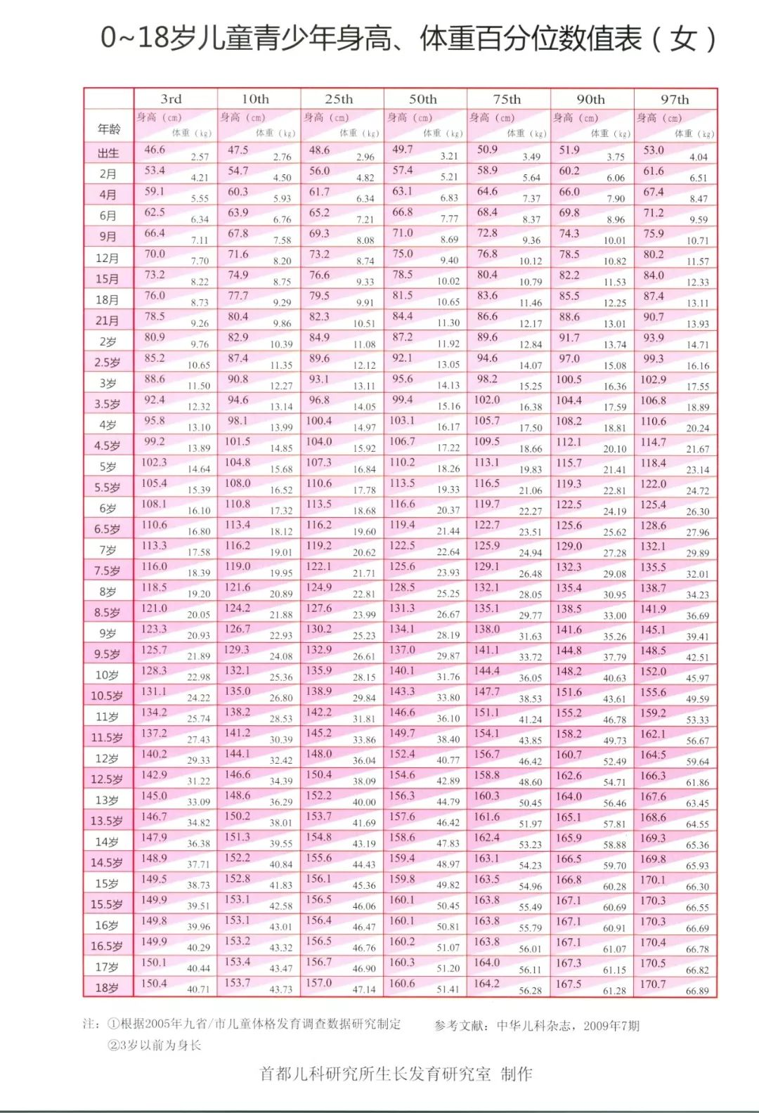 0~18岁儿童青少年生长发育表