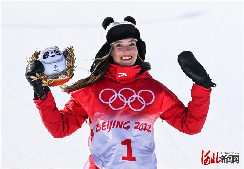 2月18日,谷爱凌庆祝胜利。 河北日报记者耿辉摄