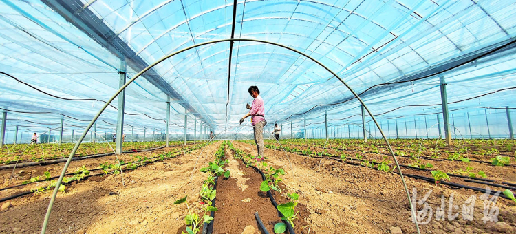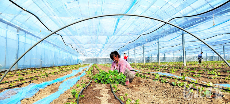 2022年2月20日,村民在河北省隆尧县自辉家庭农场薄皮甜瓜大棚内劳作。河北日报记者赵永辉摄影报道