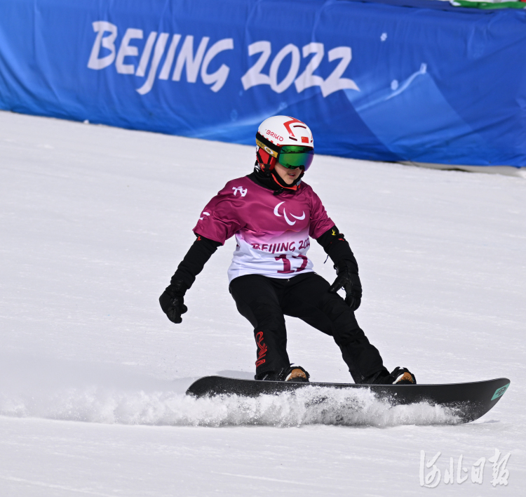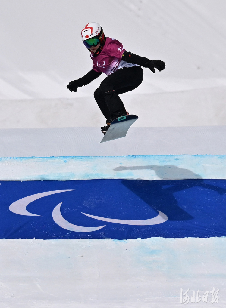 3月6日,中国选手胡焱红张家口在女子障碍追逐LL2级资格赛比赛中。当日,北京2022年冬残奥会单板滑雪障碍追逐资格赛在张家口云顶滑雪公园举行。参加比赛的8名中国河北籍选手成功晋级决赛。 河北日报记者贾恒摄影报道