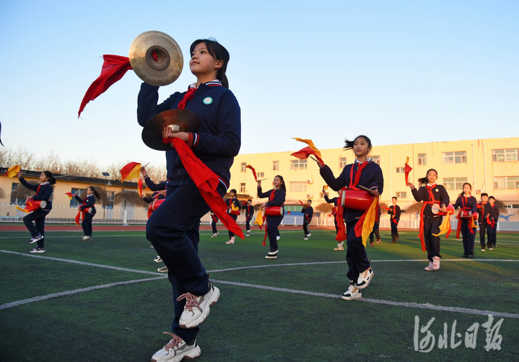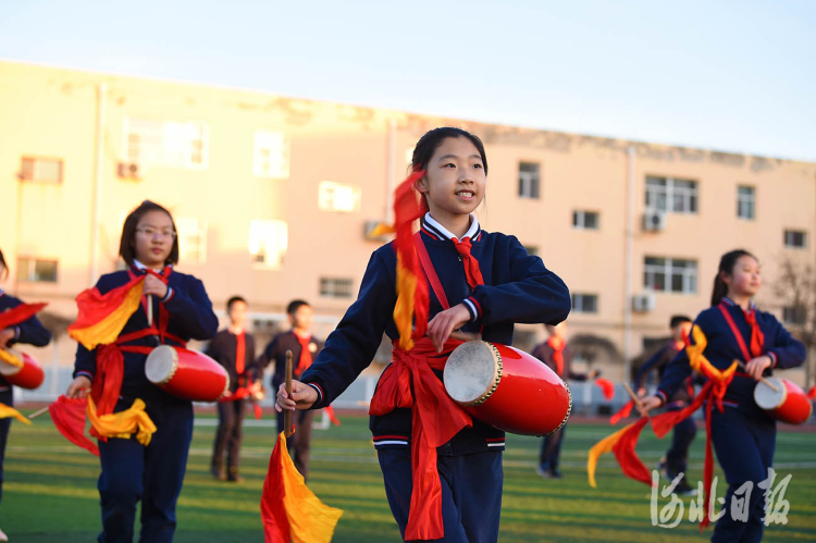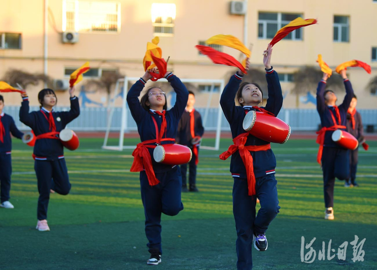 近日,河北省霸州市胜芳镇红光小学腰鼓社团的学生在排练腰鼓。河北日报记者赵永辉摄影报道