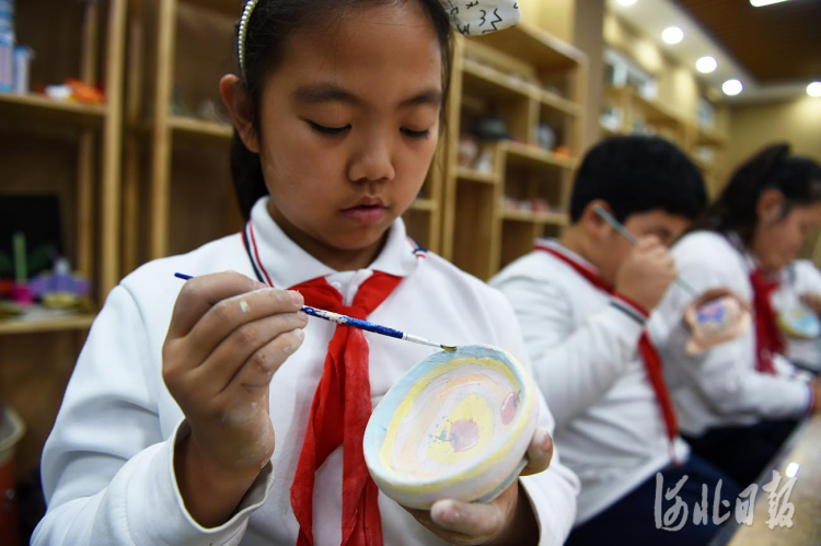 近日,河北省霸州市胜芳镇红光小学陶艺社团的学生在上陶艺课。河北日报记者赵永辉摄影报道