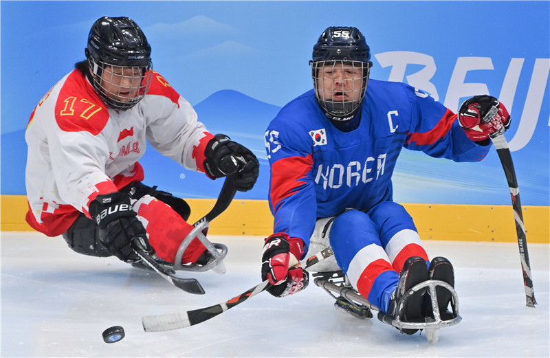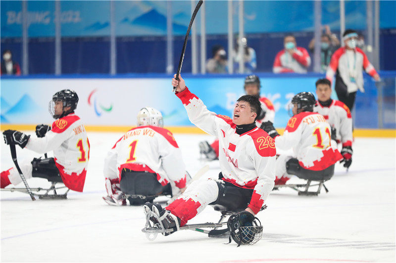 3月12日,北京冬残奥会残奥冰球铜牌争夺战在国家体育馆举行,首次参加冬残奥会的中国队以4:0战胜韩国队,夺得铜牌。