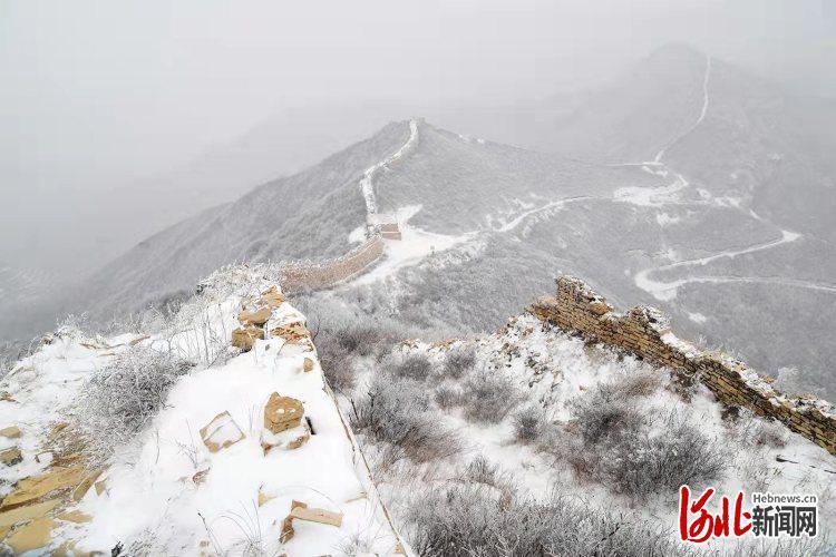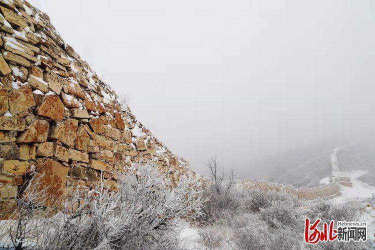 3月18日,样边长城在白雪和雾凇的映衬下显得格外雄伟壮观。