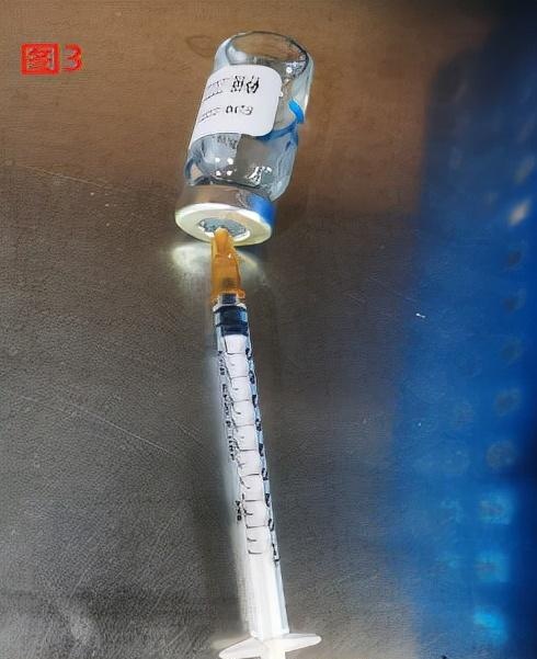 图3中除了有图2中的标签不规范的问题,还在使用中的胰岛素上留置了使用过的注射器。根据宗志勇、蔡虻、赵菁主编的《临床注射操作医院感染风险防控手册》多剂量用药管理中规定:每次穿刺多剂量药瓶时,均应使用新的无菌注射器和无菌针头;不应在多剂量的药瓶瓶塞处留置针头。可见图3中违背了注射器一人一用一抛弃的原则。