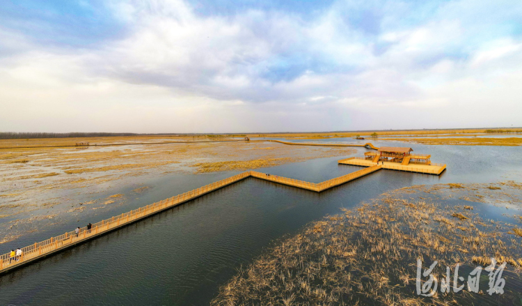 2022年3月27日,春日暖阳下的白洋淀新安北堤木栈道。 河北日报记者赵海江摄