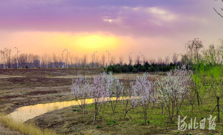 2022年3月26日,生态堤绿化中的桃花、杏花竞相绽放。 河北日报记者赵海江摄