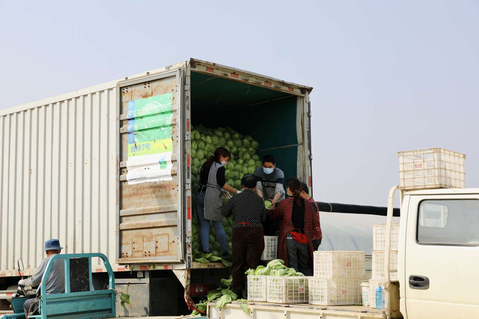 近日,在河北省宁晋县华燕特色种植产业园,工人们正在将采收的洋白菜装车。河北日报通讯员 赵一婕摄