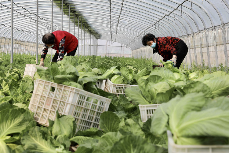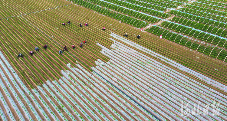 近日,在河北省宁晋县华燕特色种植产业园大棚内,工人们正在采收洋白菜。河北日报记者 赵永辉摄