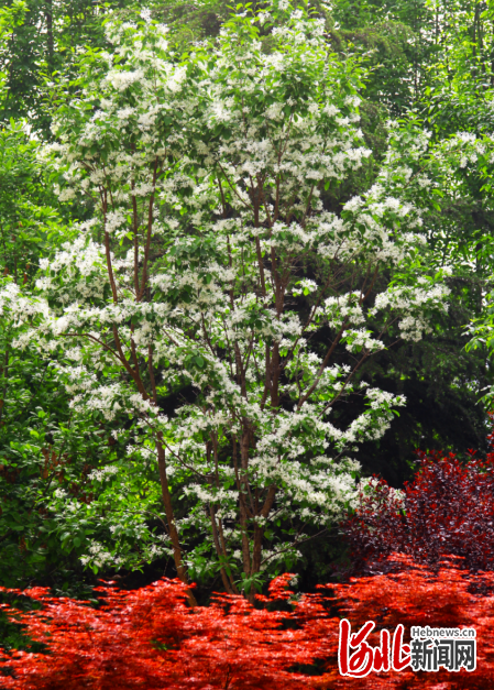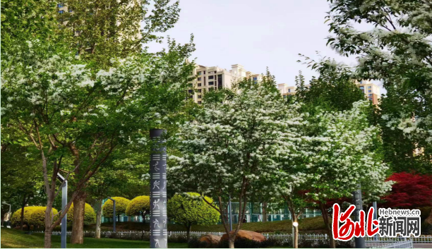 位于石家庄体育公园的流苏花开如覆霜盖雪。