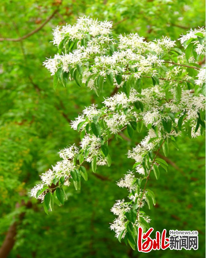 流苏树是木犀科流苏属植物,树形高大优美,可达20米,枝叶繁茂,盛花时期满树白花,聚伞状圆锥花序。如覆霜盖雪,清丽宜人,它还有一个浪漫的别名叫“四月雪”,是国家二级保护植物。流苏树因其花形像流苏而得名,其树枝叶繁茂,花大而美丽,且抗逆性强,是优良的造林和观赏树种。