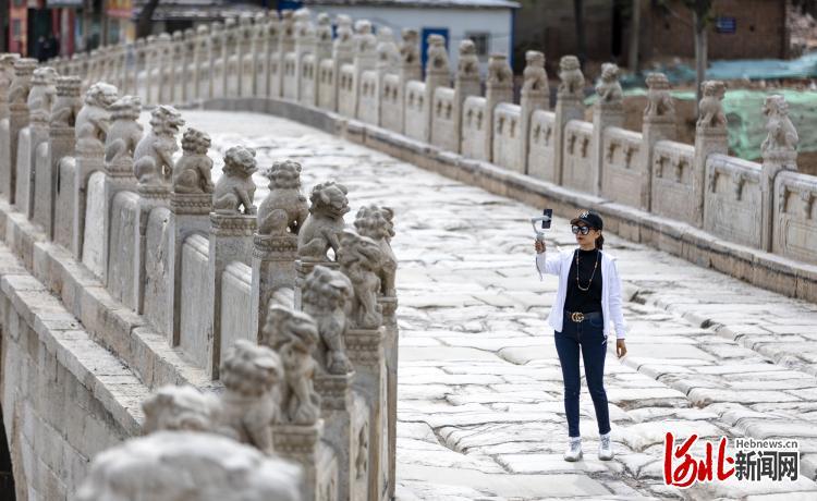2022年4月22日,游人在衡水安济桥拍照打卡。衡水安济桥,修建于清乾隆年间,已有250多年的历史,是河北省现存最大的古代石桥之一。作为衡水市地标性建筑,安济桥历经两年多的修缮,现已重现原有的历史风貌。通讯员 陈康摄影报道
