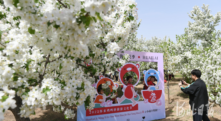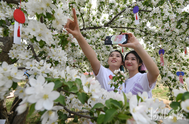 2022年4月24日,游客在河北省张家口市怀来县小南辛堡镇大古城村印象海棠公园内拍照留念。通讯员 梁涛摄影报道