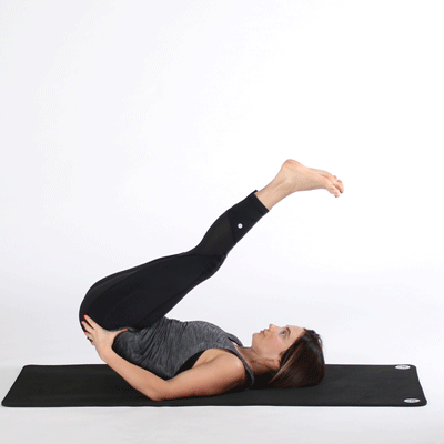 吸气,双腿向上抬起,垂直于地面