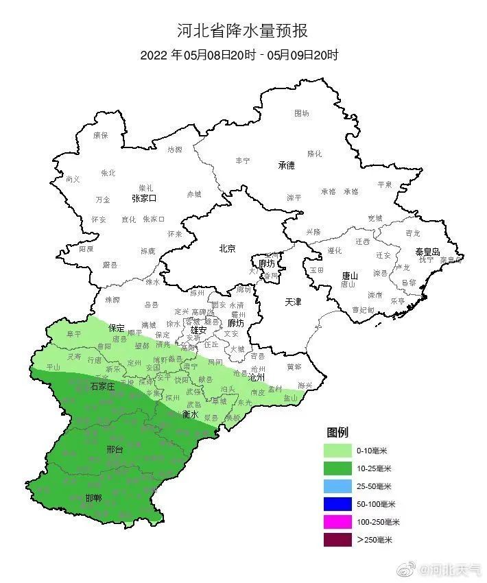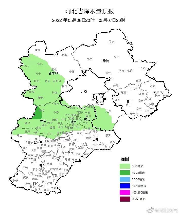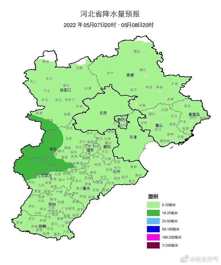 7日夜间到8日,河北省多云间阴有小雨或零星小雨,其中张家口、保定、石家庄局地有中雨。