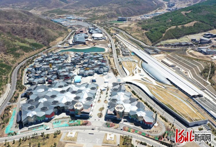 2022年5月6日拍摄的河北省张家口市崇礼区太子城冰雪小镇和太子城高铁站。河北省张家口市立足加强冬奥场馆赛后利用,在崇礼地区尤其是冬奥核心区,积极承办、举办各类高水平赛事和群众性体育活动,推动后奥运经济高质量发展。通讯员武殿森摄影报道
