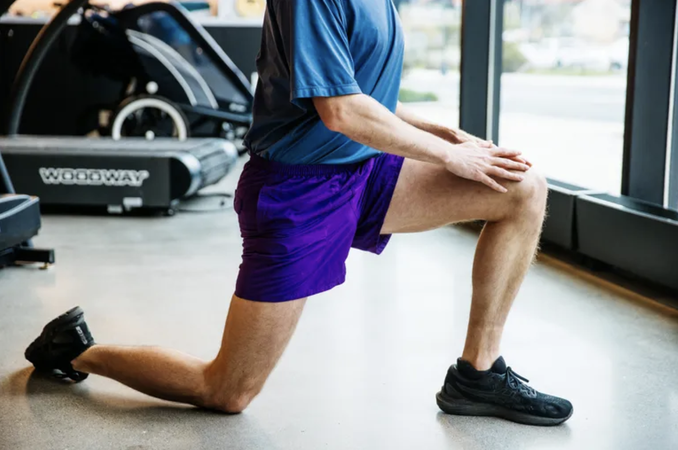 费雷拉医生建议,以跪姿弓步作为起始姿势,一只脚向前。然后保持核心收紧,脊椎伸直,再让身体前倾,感到臀大肌的挤压,保持这样的拉伸姿势30秒到60秒。