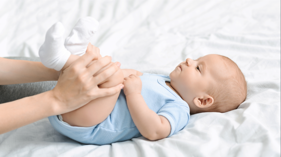 帮助孩子把膝盖紧贴胸部,模拟蹲姿(这是最自然的排便姿势),躺着是很难排出大便的。轻轻弯曲腹部也能帮助排便。