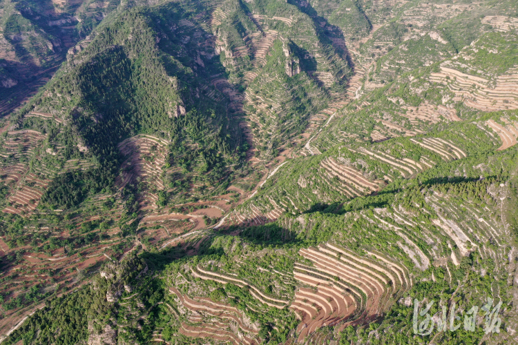 2022年5月22日拍摄的河北省邯郸市涉县王金庄梯田景观,“农民种子银行”的种子均种在梯田上(无人机照片)。位于太行山深处的河北省邯郸市涉县王金庄村是全球重要农业文化遗产涉县旱作石堰梯田系统核心区,“农民种子银行”就位于核心区。