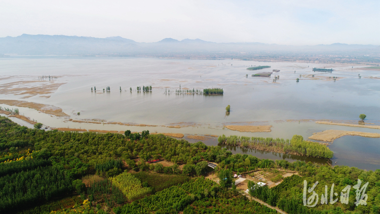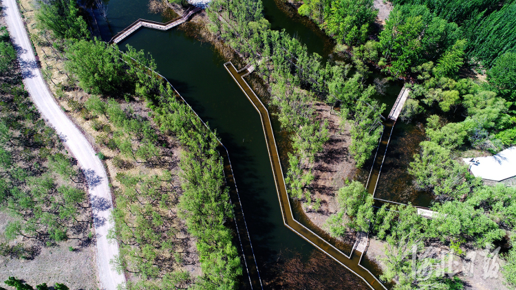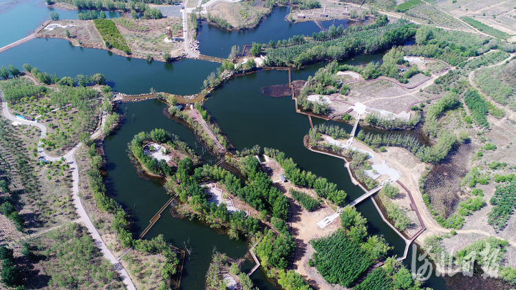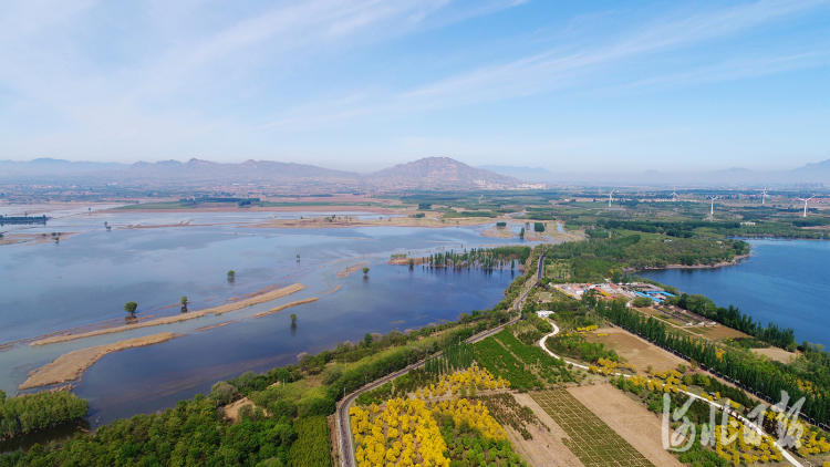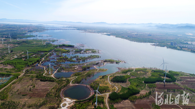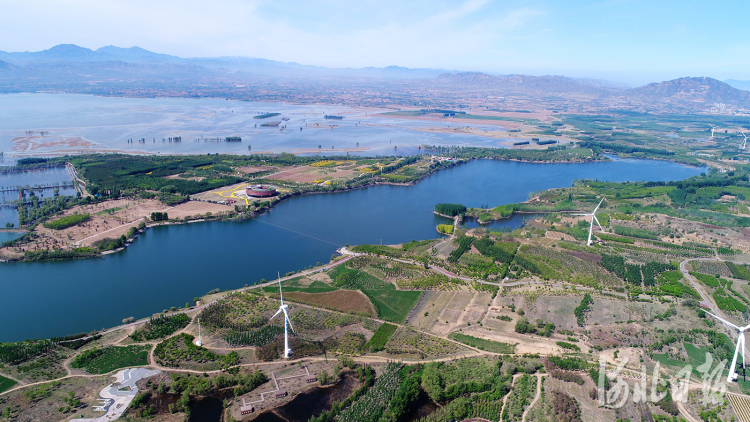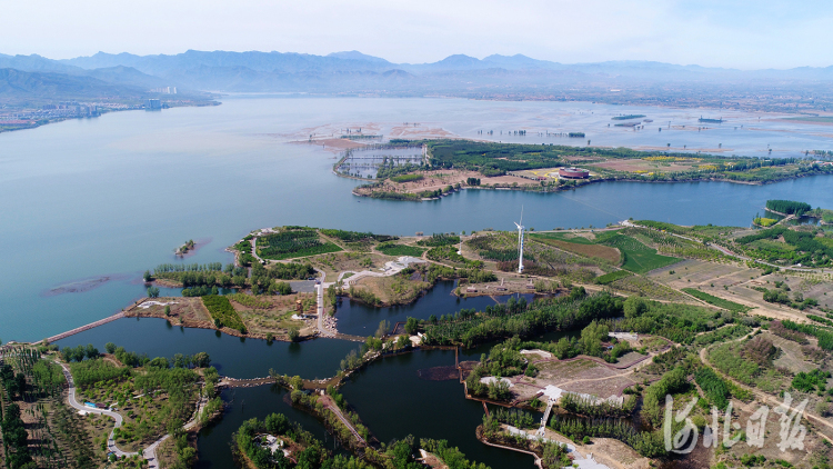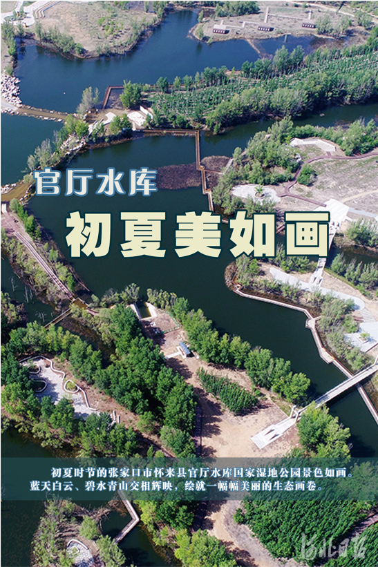 初夏时节,河北省张家口市怀来县官厅水库国家湿地公园景色如画,蓝天白云、碧水青山交相辉映,绘就一幅幅美丽的生态画卷。