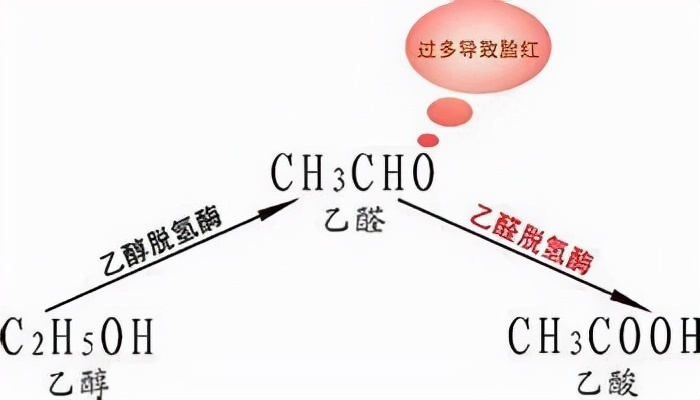 而这中间过程中产生的乙醛则具有让毛细血管扩张的功能,还没来得及转化为乙酸的乙醛使得脸部毛细血管的扩张充血,从而让人看起来面红耳赤。