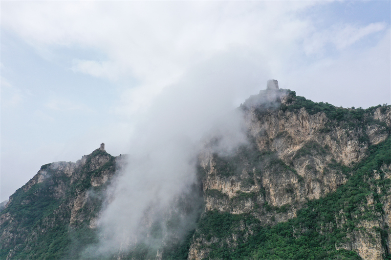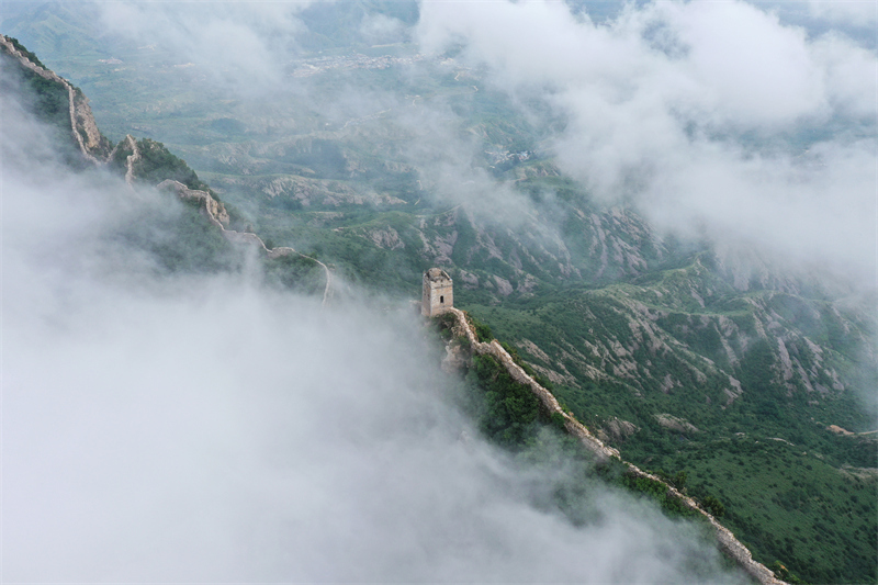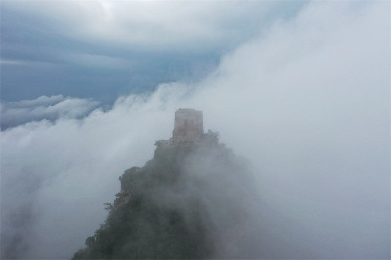 云雾中的长城仙女楼(7月4日摄,无人机照片)。