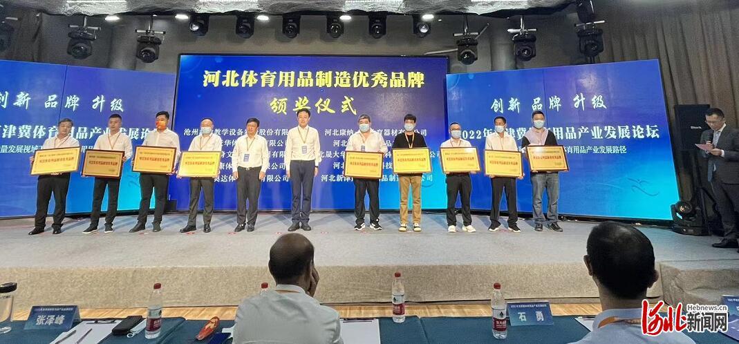 7月29日,2022年京津冀体育用品产业发展论坛在沧州市海兴县举行,论坛上为“河北体育用品制造十佳品牌”“河北体育用品制造优秀品牌”“河北体育用品制造最具潜力品牌”进行了颁奖。