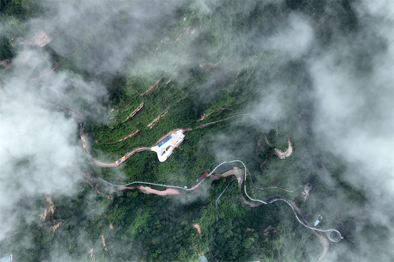 这是8月14日在河北省邢台市天河山景区拍摄的云海景观(无人机照片)。新华社记者范世辉摄