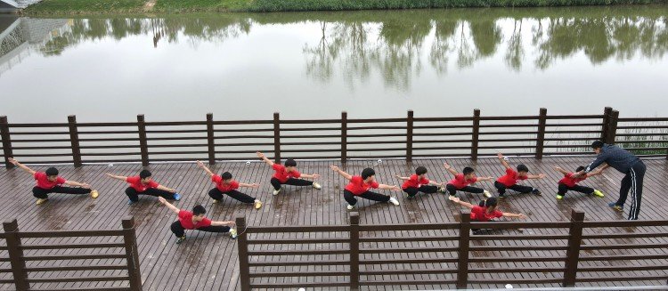 2022年8月29日,沧州市中宇小学学生在京杭大运河沧州市区段练习传统武术。
