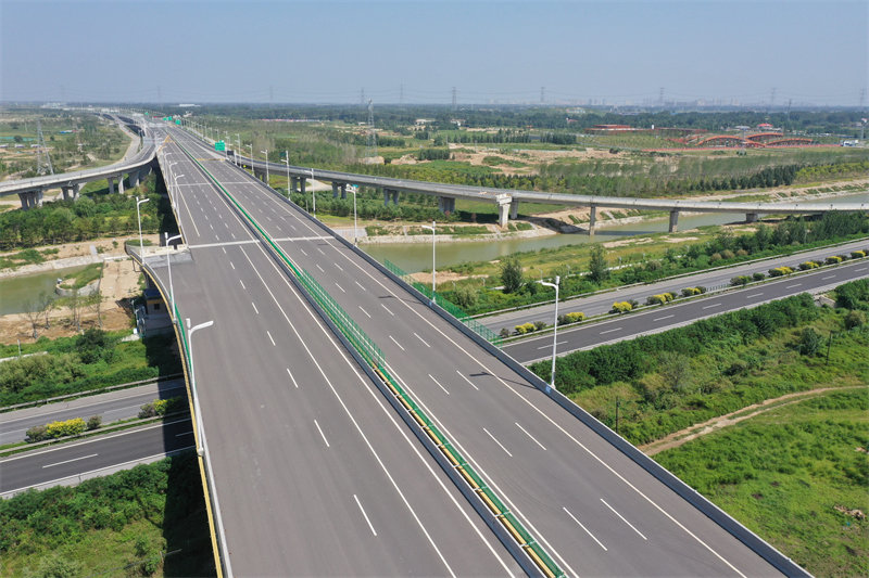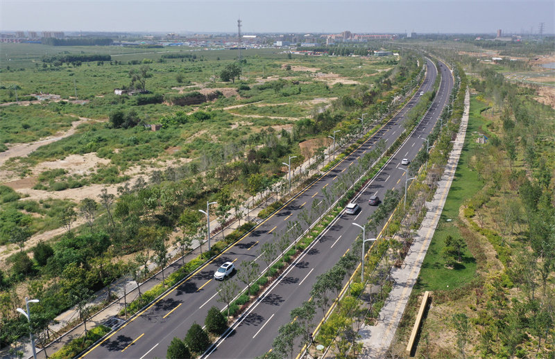 河北雄安新区海岳大街与京雄高速连接线(9月2日摄,无人机照片)。