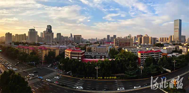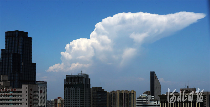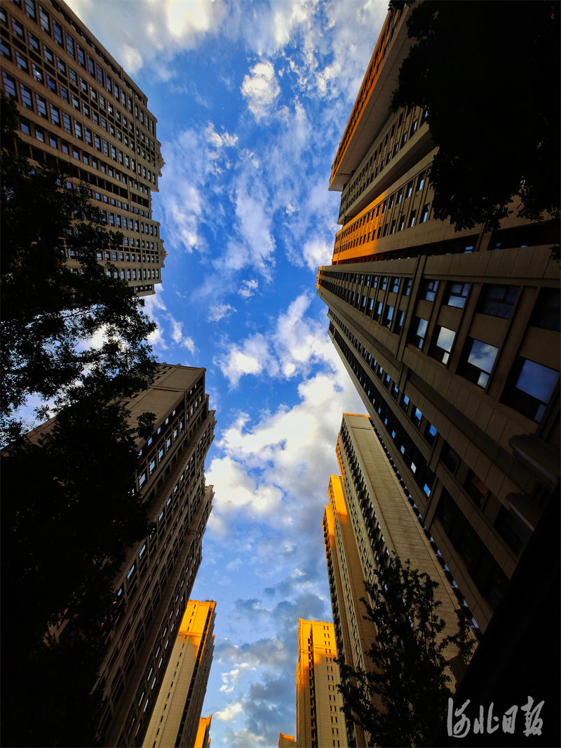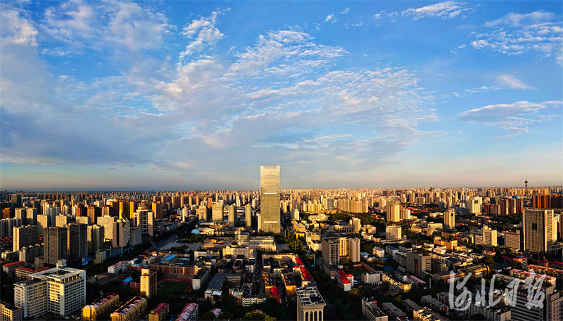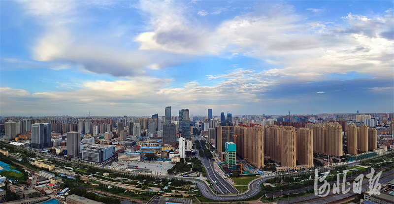 2022年8月22日,从省城石家庄166.8米高的新合作大厦楼顶平台,极目远眺,美丽的天空和鳞次栉比的城市高楼,构成优美的城市风景。