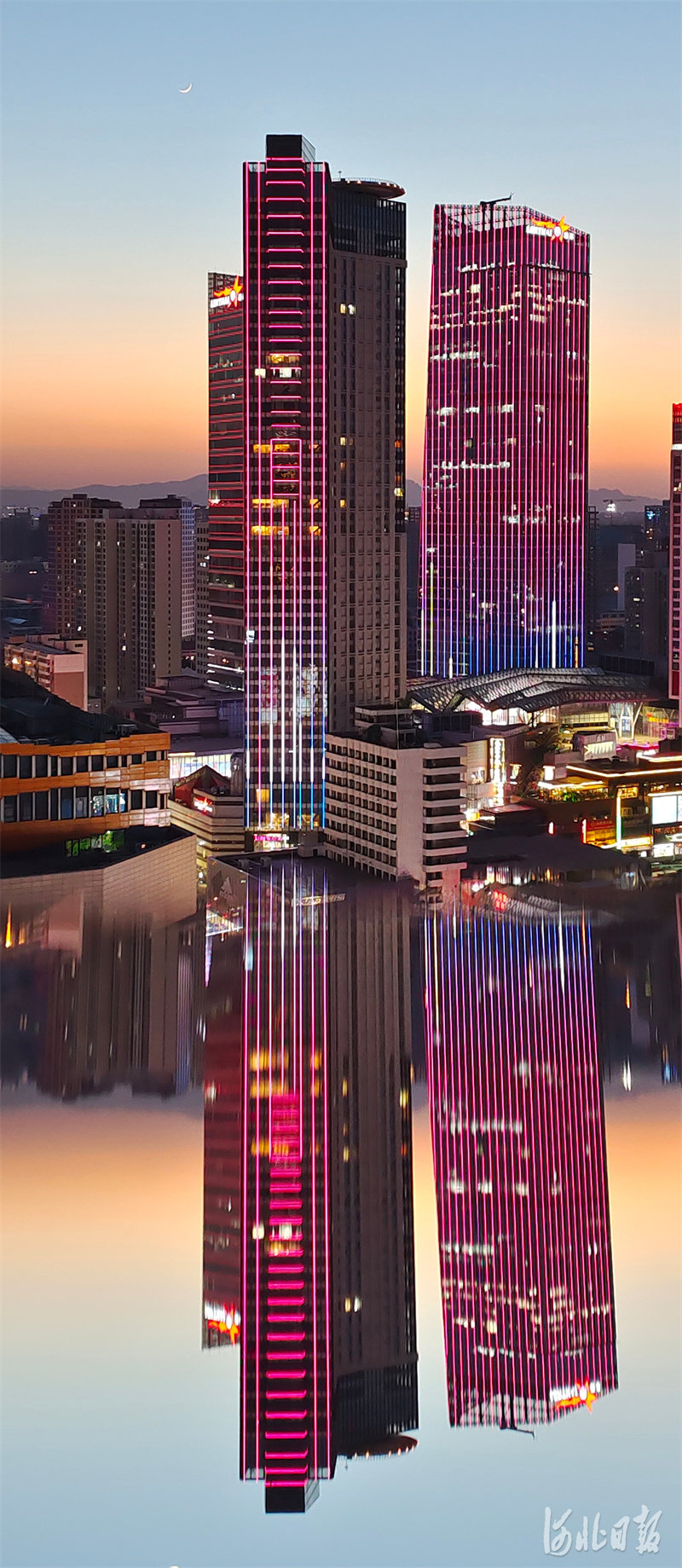 2022年6月1日华灯初上,石家庄市勒泰中心倒影成趣。