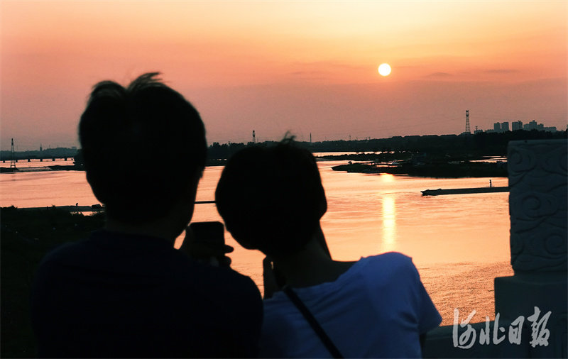 2022年7月10日,省城市民在滹沱河畔欣赏夕阳美景。