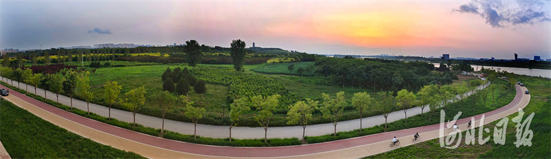 2022年7月10日,省城石家庄滹沱河畔,绿染如织,人们纷纷来到这里休闲赏景。