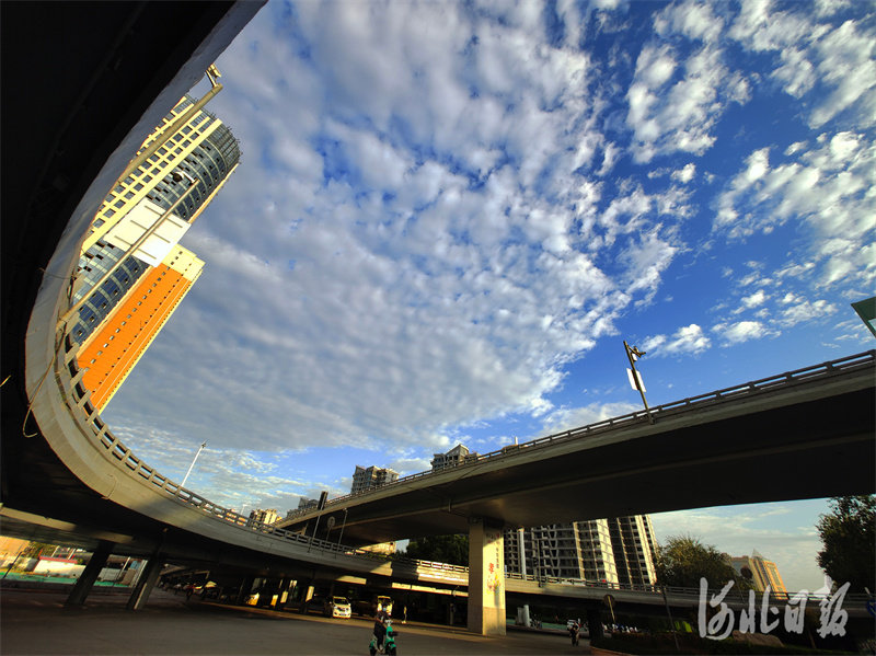 2022年8月20日,在省城棉一立交桥下仰望,晨光绚丽,美景如画。