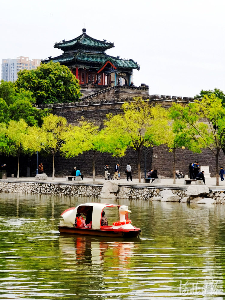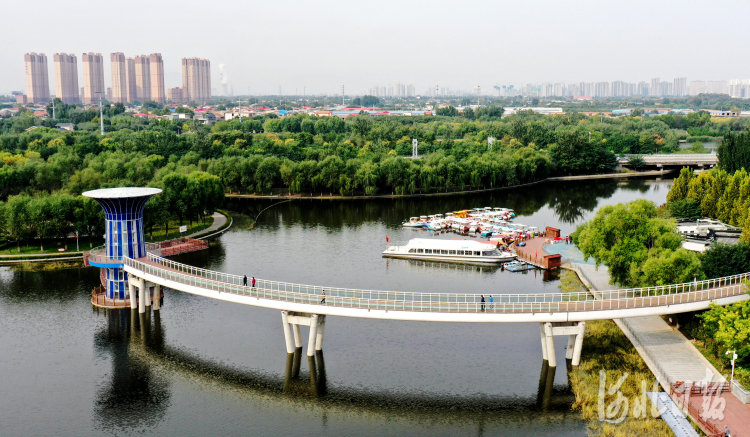 10月5日,市民在石家庄市栾城区泊水公园游玩,欣赏初秋的美景。